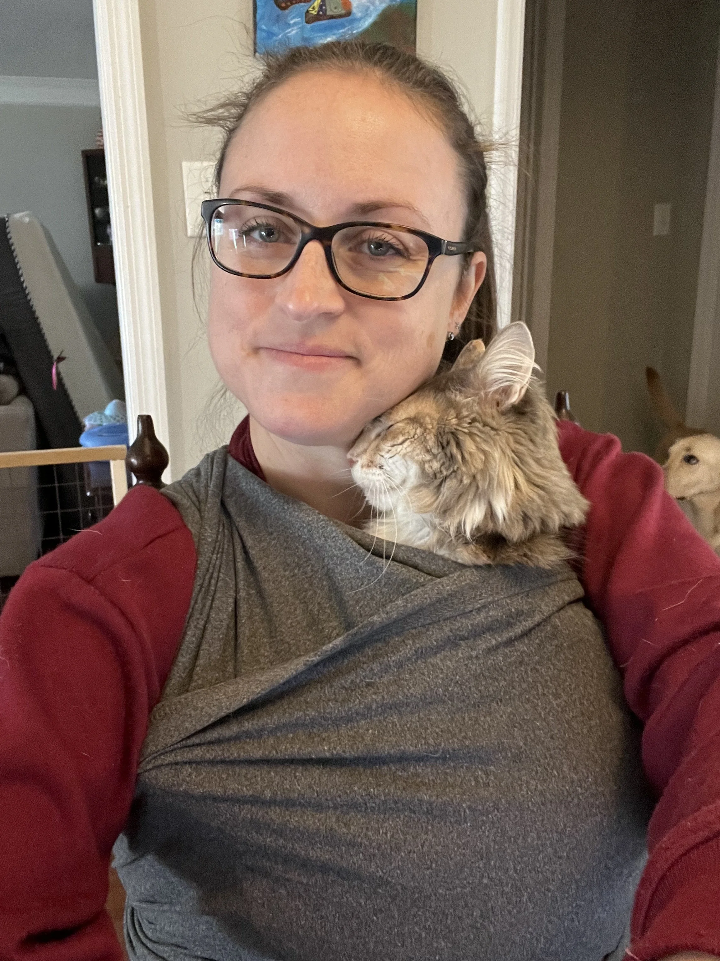 Then there’s Sophie, the velcro cat. If she could be held and glued to Emily’s body all day, she’d be her happiest self.
